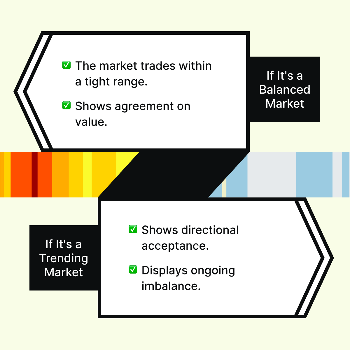 Traders must note that sustained volume, liquidity, and value migration confirm acceptance. Without these elements, price often returns to the prior range.