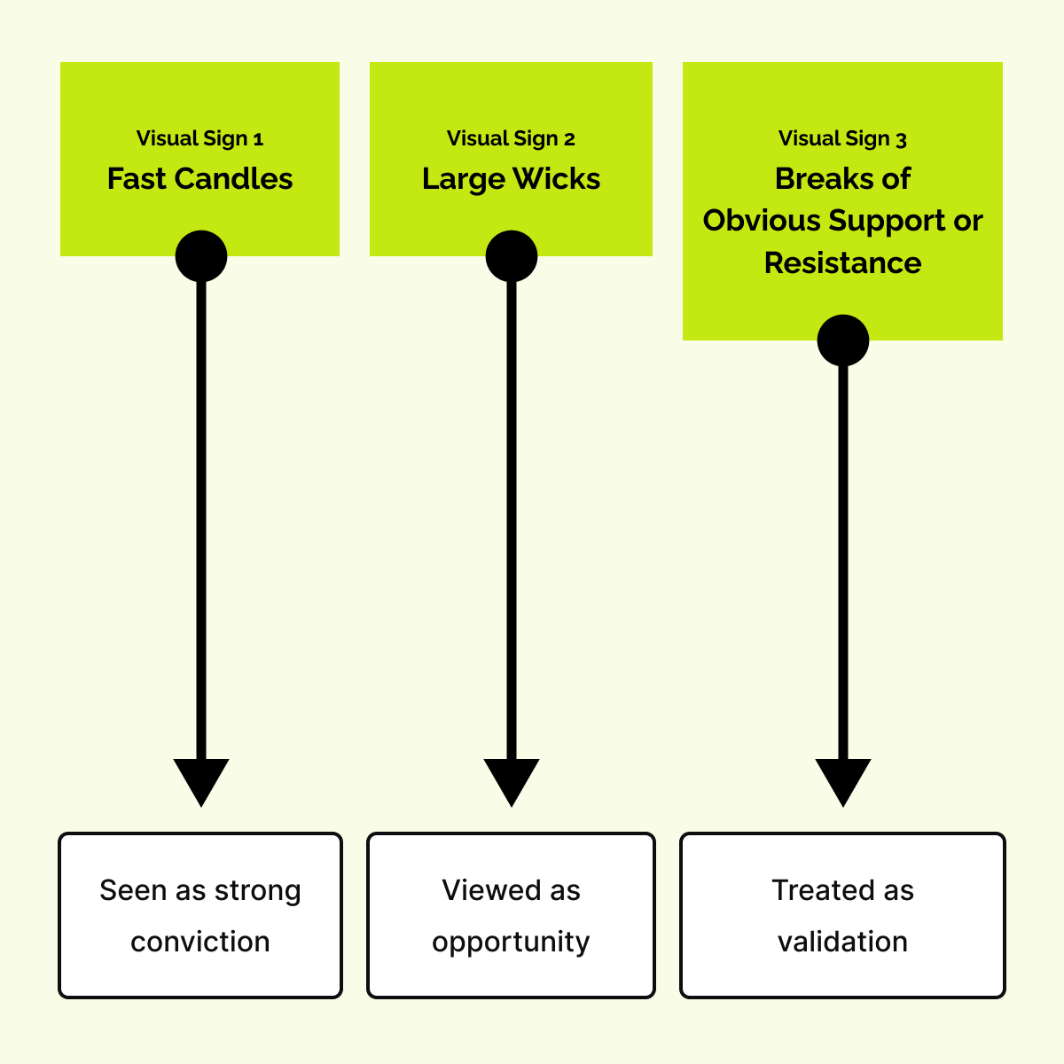 Misreading these moves is one of the most common errors in any headline trading strategy. Many traders interpret these three “visual signals” as confirmation: