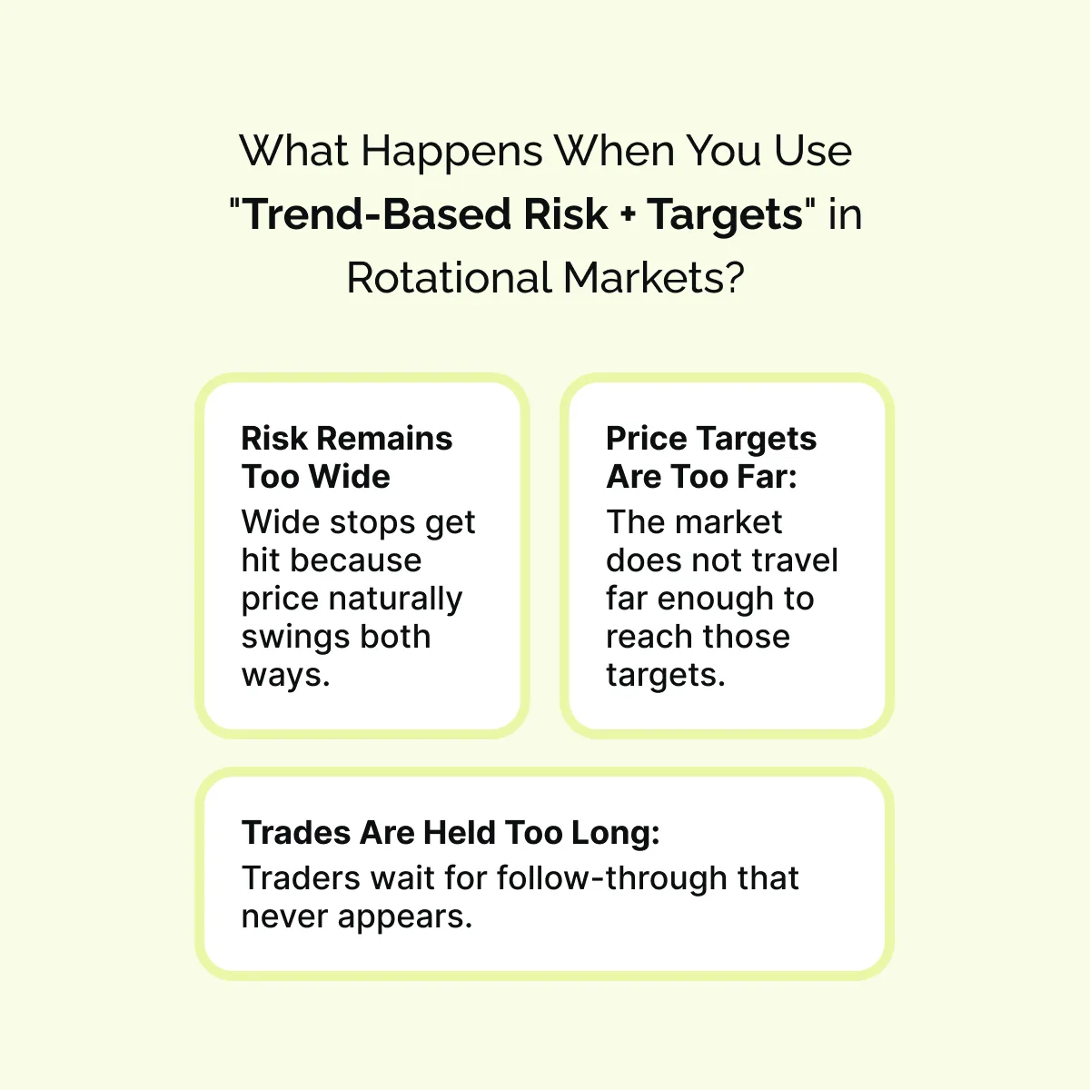 One of the most damaging mistakes in trading in choppy markets is using trend-style risk and targets in a market that is clearly rotating. Many traders do not adjust their trade plan when conditions change. As a result, even good entries fail.