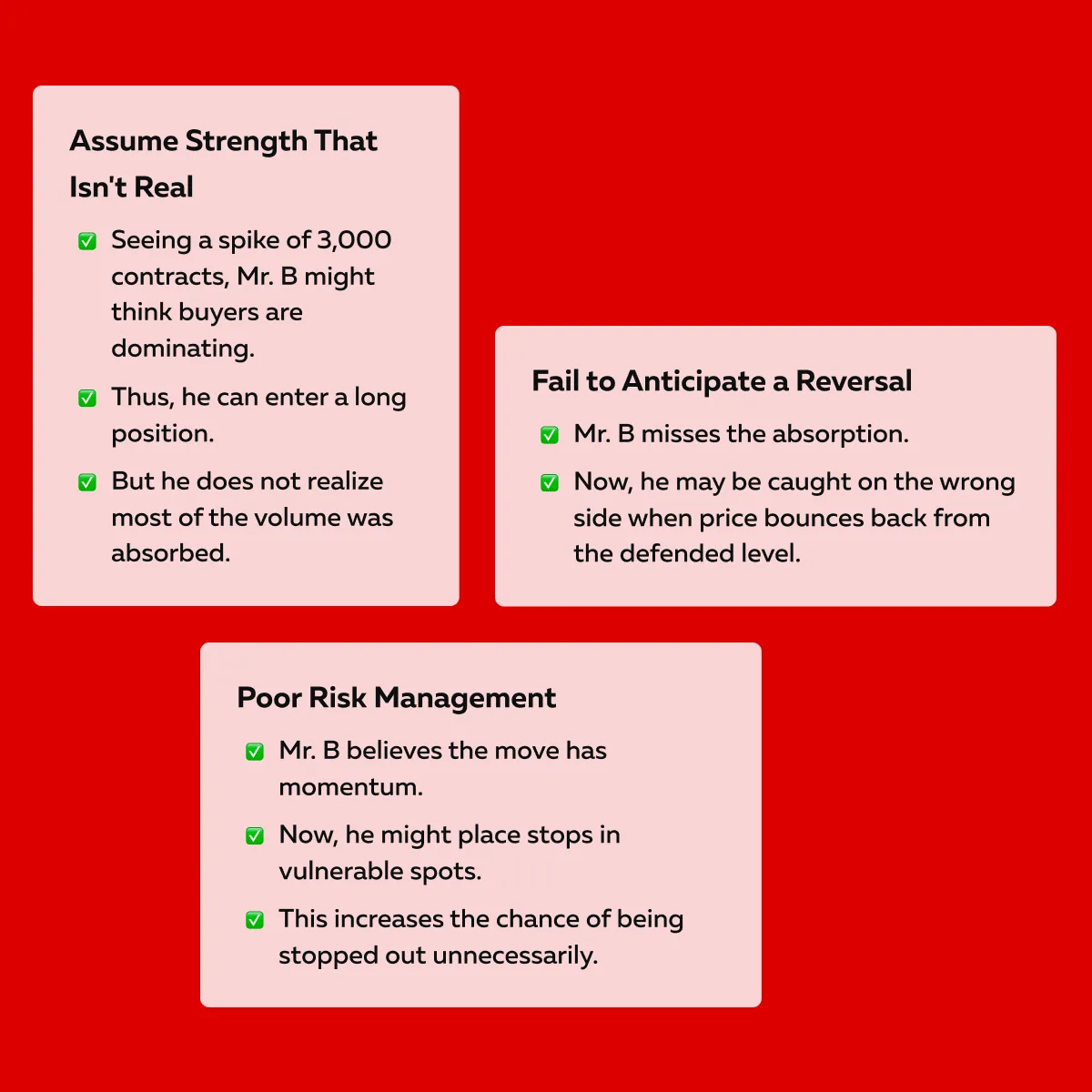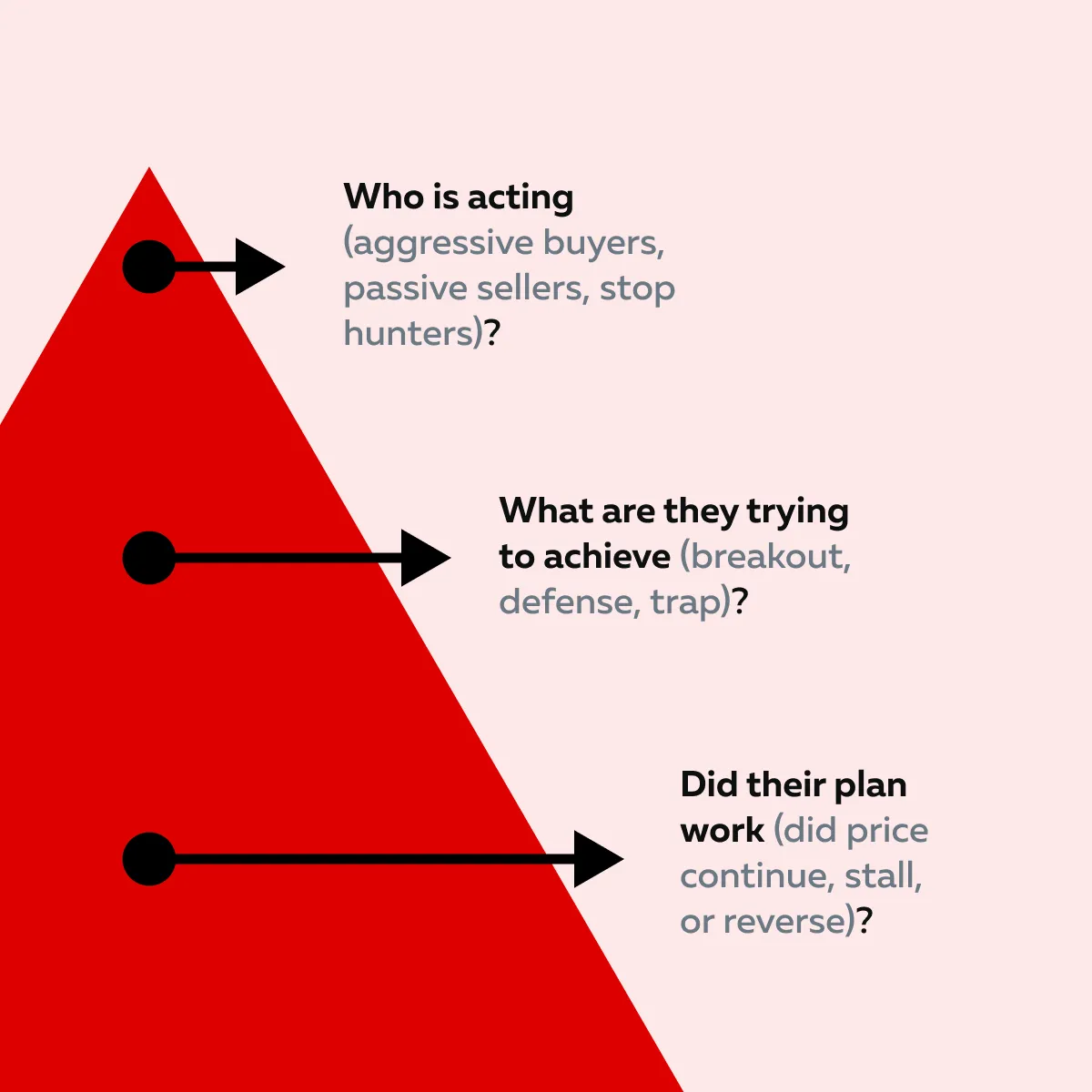 - Recognizing signs like exhaustion or absorption (both reveal market intent).