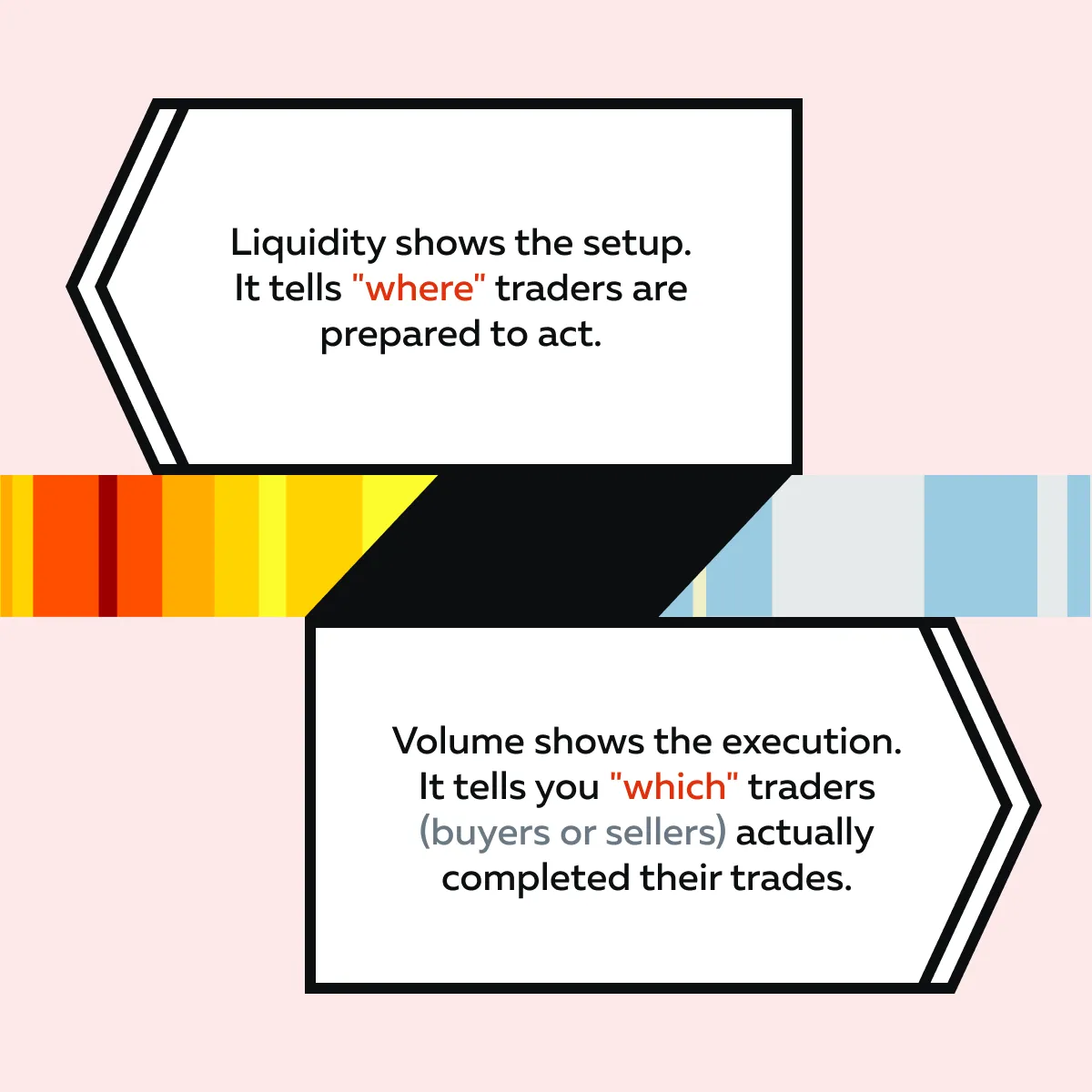 So, liquidity is the lead and volume is the result! To read the volume completely, you need to pair it with liquidity. This lets you see both the market’s intentions and its actions.