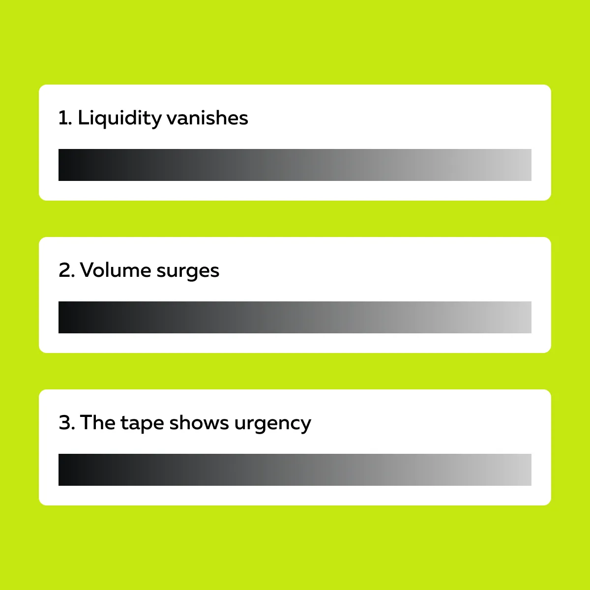 Interpretation? This shows many market participants are trading aggressively at the same time. The tape (the stream of executed orders) feels faster because urgency is high.