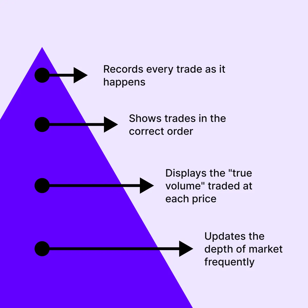 Many traders rely heavily on order flow analysis in their decision-making. Remember that it only tells the truth when the data behind it is complete and updated promptly. Seasoned participants believe order flow “stops working” during fast markets or volatile sessions. However, the real issue is usually the quality of order flow data (not the method itself).
