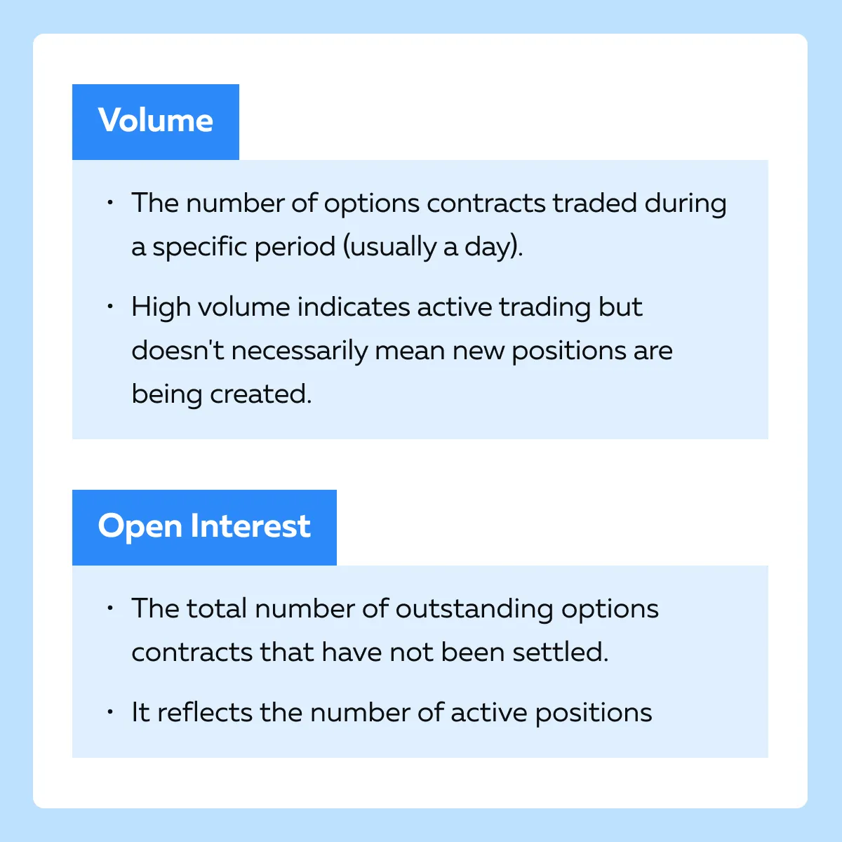 Analyzing unusual options activity entails studying sudden spikes in trading volume and changes in the number of active options contracts. By understanding these patterns, traders can get information about future stock price movements. Some key metrics that can help you determine market sentiment and predict possible price changes are: