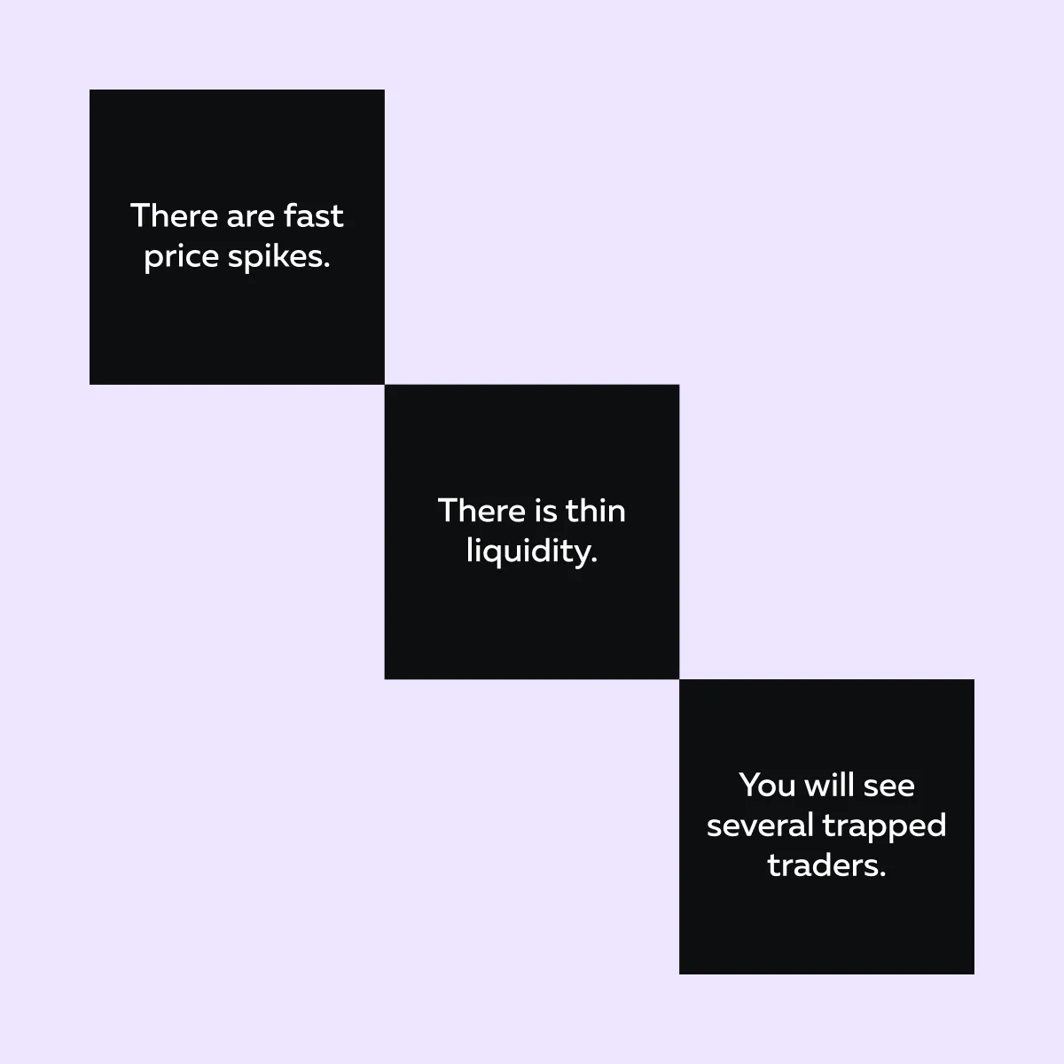 - The order book displays fewer resting limit orders (a thin book) around the current price.