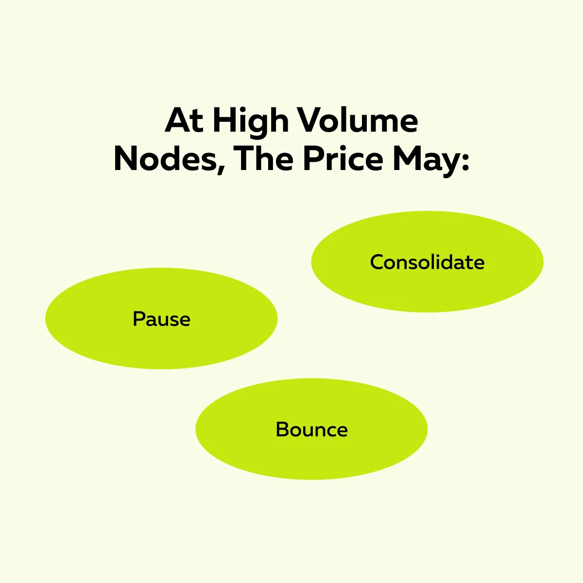 High-volume nodes (churn areas) are price zones where a lot of trading occurs. These represent “value areas” as the market saw those prices as fair and balanced between buyers and sellers. Since so much historical liquidity was exchanged there, these zones develop strong market memory.