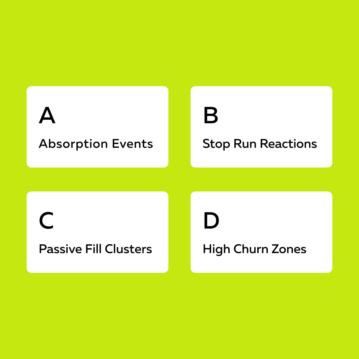 An absorption event happens when strong buying or selling pressure hits the market, yet the price barely moves. But why does this happen? That’s because large passive orders are resting in the order book. They are absorbing the flow! If we make it simpler: