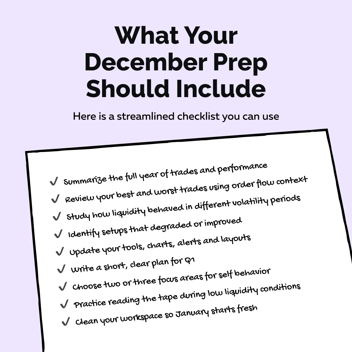 December is not a dead month. It is one of the most important periods for reviewing behavior, studying liquidity, and preparing for the next volatility cycle. If you trade order flow, your preparation window begins now, not after the calendar flips.