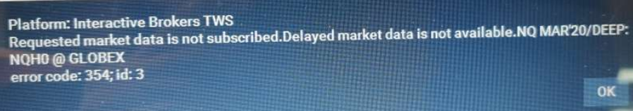 Platform: Interactive Brokers TWS Requested market data is not subscribed. Delayed market data is not available.
