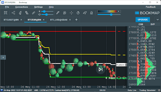 The above screenshot shows the price levels being reset at 22:00:00 on the main chart (heatmap disabled for clarity).