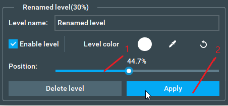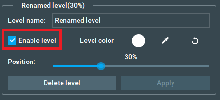 The Delete Level button removes the level from the main chart and deletes the setting panel for this level. If you want to disable the level but keep it for later, you can simply uncheck the “Enable Level” checkbox.