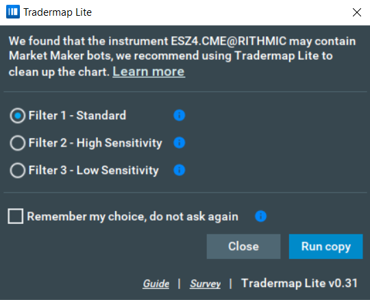 First version of Tradermap Lite, filters out Market Maker bots on ES Futures.