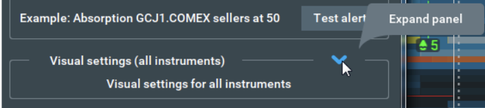 Traders can configure the Absorption Indicator settings separately for each instrument, helping you customize your Bookmap trading experience.