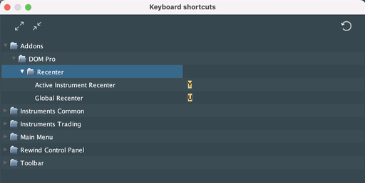 • Active Instrument Recenter: this triggers a recenter action upon the pressing a shortcut button in so long as the DOM Pro window is in focus.