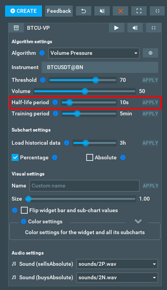 • Fixed the bug where the threshold value sometimes was not changed on the widget with Liquidation Pressure algo after changing it in the widget settings.