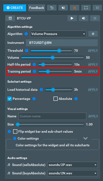 GO TO ➔ Orderbook Pressure algorithmThis section details the control elements for the Orderbook Pressure algorithm.