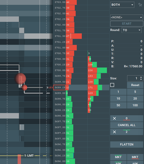 With our trading Bot enabled, simply configure the Bookmap Trading Control Panel with your order size and place an order, e.g: Limit Order size 1 at 5696.25: