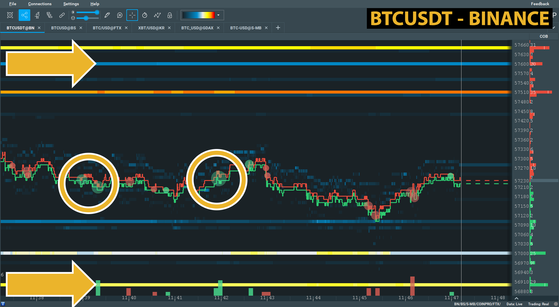 Individually, each exchange is missing key parts of the order flow. But, by combining each instrument into one Bookmap chart, Multibook shows you the whole picture.