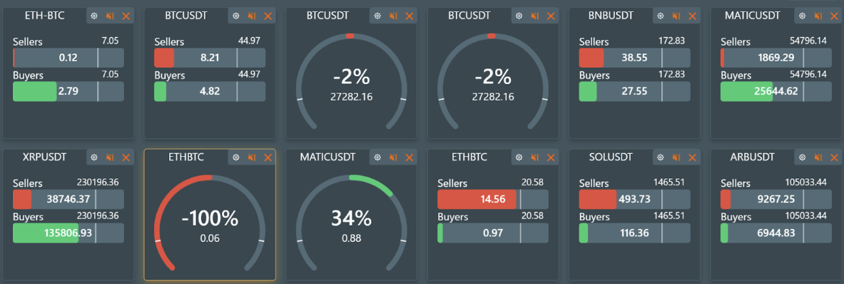 O widget Heatmap permite que os traders monitorem vários ativos simultaneamente, proporcionando uma visão rápida do sentimento geral do mercado.