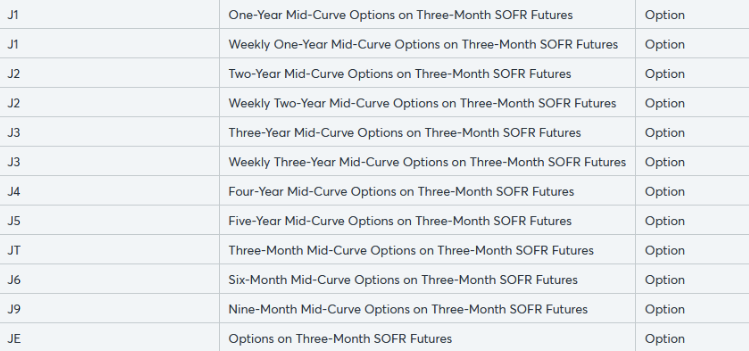 Aqui está uma lista de instrumentos CME conhecidos sem icebergs: