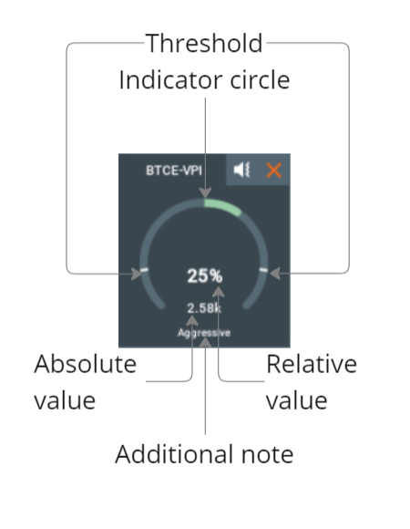 Each widget contains a unique algorithm. This algorithm processes the data based on a specific logic, and displays the output of the calculation both on the widget, and within the sub-chart. All algorithms include a notification system to notify users about a certain event, or to notify of the crossing of a threshold.