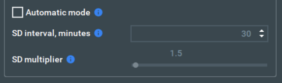The “SD multiplier” slider allows you to adjust the number of detections. The larger its value is - the fewer detections will be on the chart. This allows traders to configure exactly how large their minimum size setting should be when automated, in comparison to market movements.